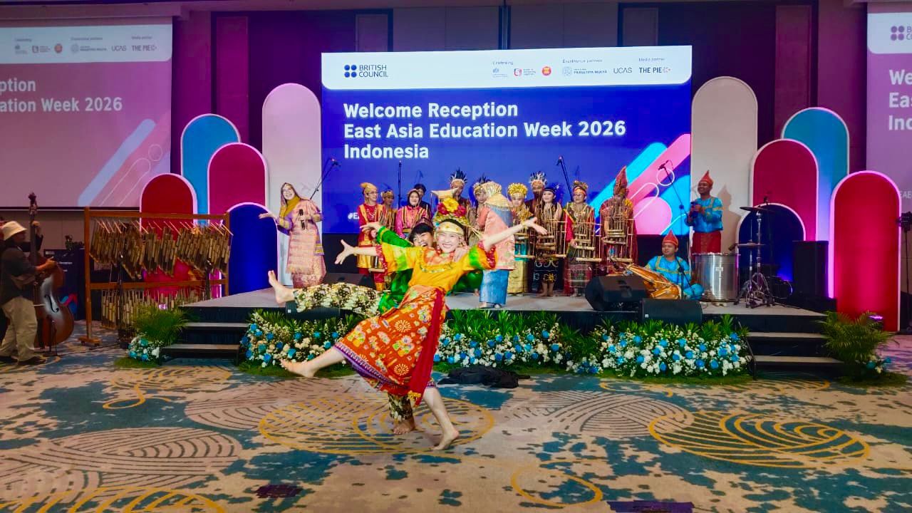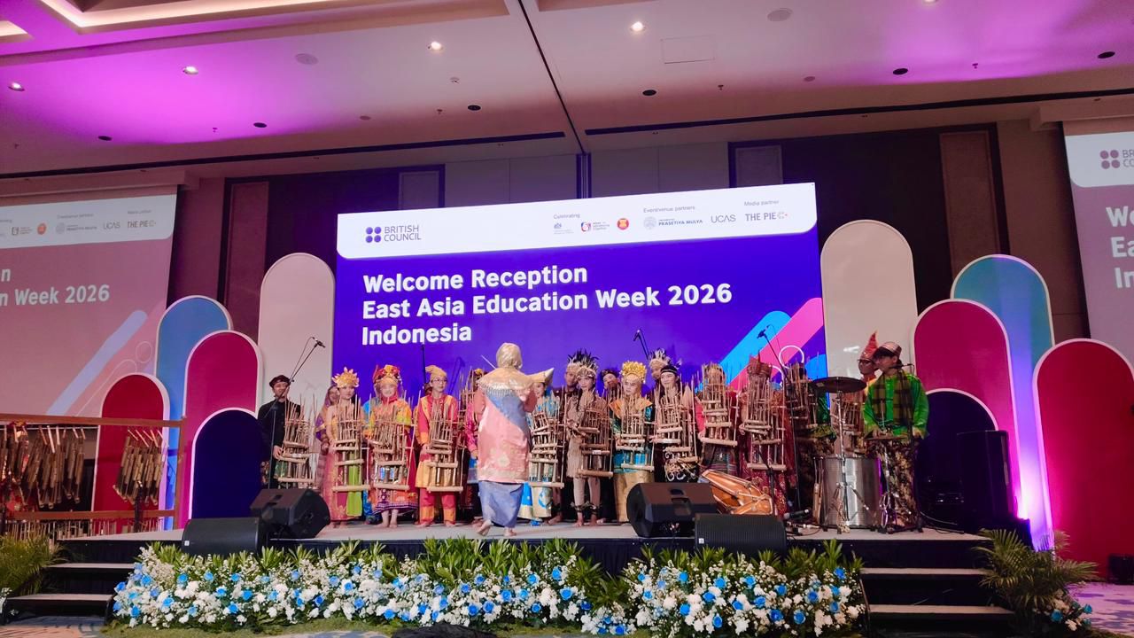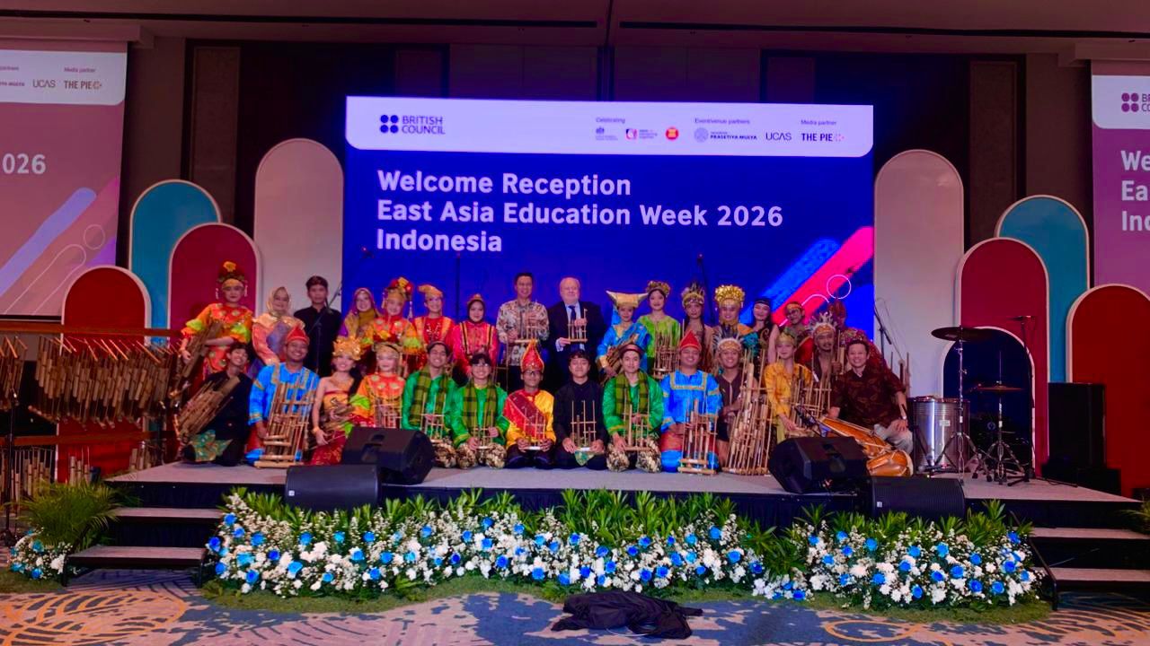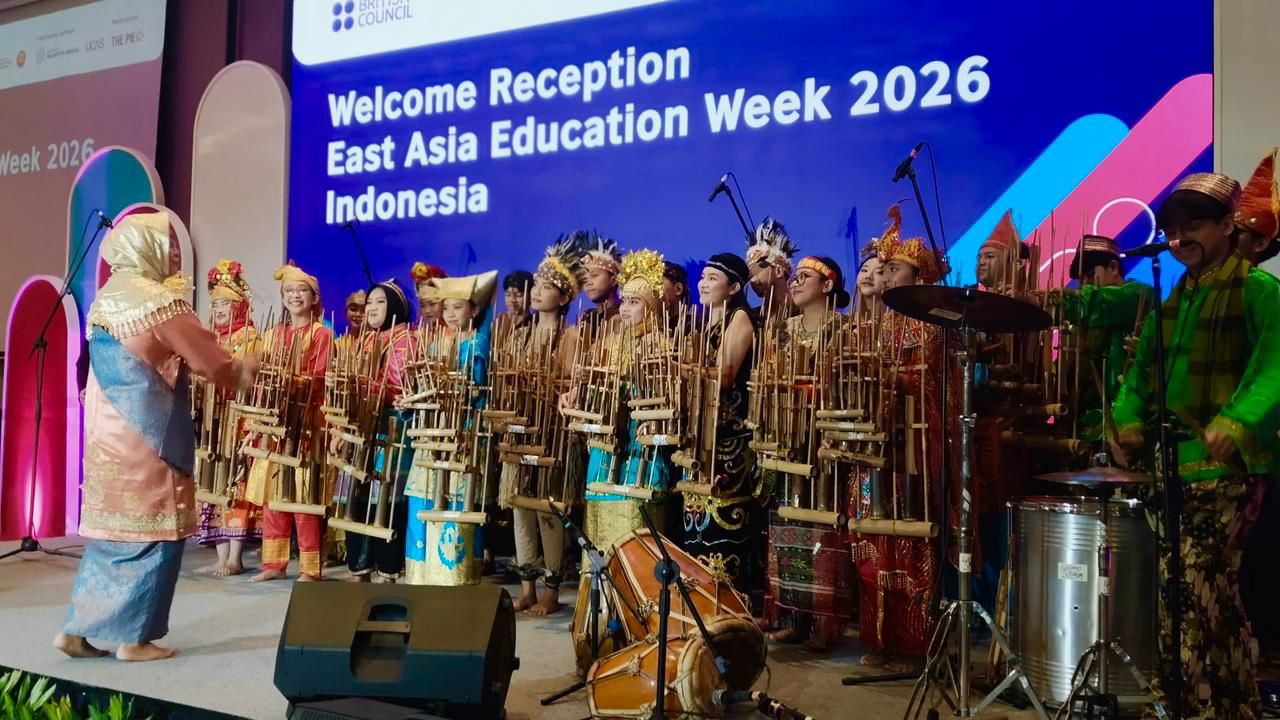 Tangerang, Indonesia (03/01/2026) – Tim Muhibah Angklung dari Bandung, Jawa Barat, yang aktif memperkenalkan angklung ke berbagai panggung dunia, kembali tampil di event internasional. Setelah sukses menjalankan misi budaya ke Australia pada 2025 lalu, kali ini tim tersebut tampil di dalam negeri dalam rangkaian East Asia Education Week yang diselenggarakan oleh British Council, pada agenda Agents Conference, Selasa (3/1/2026), di Tangerang, Banten. Kegiatan ini dihadiri sekitar 300 agen pendidikan dari berbagai negara di Asia Timur. Dari total peserta tersebut, sekitar 150 merupakan perwakilan Higher Education Institution dari Inggris dan Asia Timur, serta 150 lainnya adalah education agents dari kawasan Asia Timur yang berperan dalam menjembatani kerja sama pendidikan internasional.